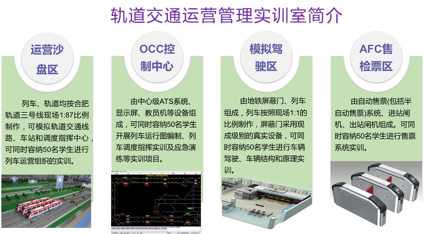 为了进一步完善实验室实训功能,改善实践性教学条件,在校内实训中心能模拟真实岗位训练、使学生能在具有职场氛围和企业文化的环境下学习,后续本专业将继续进行实训室建设,可以实现行车调度指挥、监控设备及行车状况、客流组织监控、协调各岗位工作、站控情况下的设备操作、施工作业组织及突发事件应急处理等实训项目。
