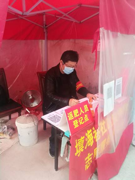 曹纯洁同志被分配在合肥市瑶海区和平路街道填海巷社区大通路94号防疫卡点工作,每天从下午5点半工作到晚上10点半,主要负责一栋住宅楼和一处未改造的大院近四十户居民的疫情防控工作,对外来人员包括返肥人员和访客进行询问、登记、扫码、测量体温,对住宅楼和大院进出人员进行量体温、扫安康码并查验。