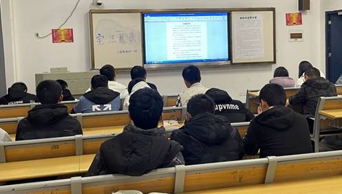 学院开展“宪法晨读”活动学习宪法知识,以集中学习和自学相结合的方式组织全院同学对宪法进行学习,并对学习成果进行检测,组织学生进行宪法知识小测试活动,帮助学生深入领会宪法的立法精神和实质要义,达到了“以测促学、以学促用”的目的。