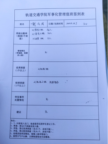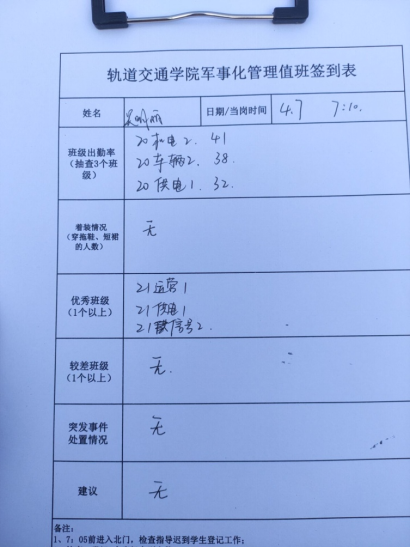 值班记录:今日应出操学生940实际出操905,出操率96.17%,较上期下降1.2个百分点,连续2天下降;满勤班级10个,较上期少2个。 今日是beat365实行“网格化”早操的第2天,利用早操机会,由值班老师领学了《关于肥西县阳性感染者活动轨迹的补充通报》,引导学生要严格遵守校规校纪,切勿出现翻墙行为,疫情防控从我做起。今日早操,好的方面是,大家积极性较高,能够认真地参与兔子舞及班级自由操的练习,但也存在早操到位率不高,迟到现象凸显的问题,希望各班加以教育引导。较好的班级是:21运营1班、21供电1班、21信号2班、21机电1班,兔子舞练习认真,动作统一。较差班级为:21机电2班,迟到人数比较多。情况反馈:无。